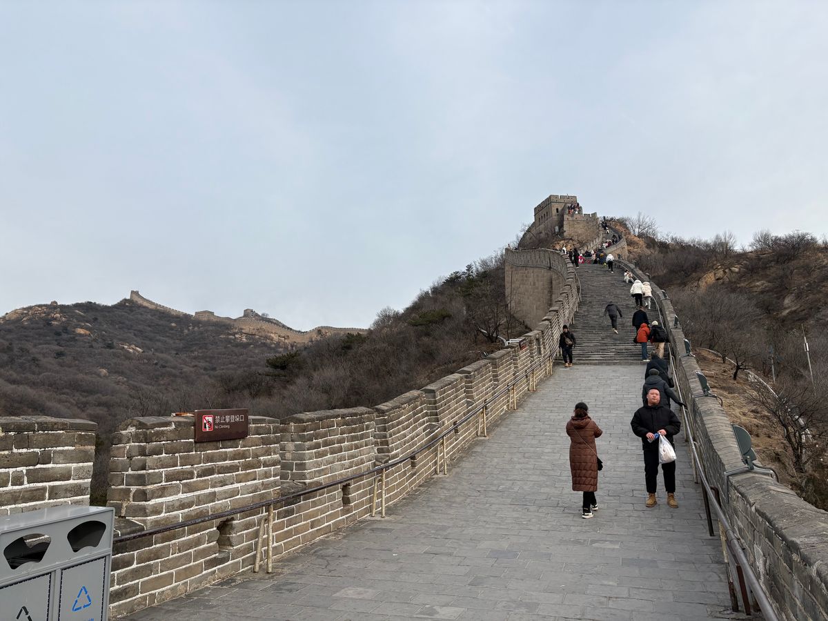 寒い朝一、ロビー出発。天安門広場から紫禁城、故宮博物院と歩き、西太后の息吹を感じた後😋昼食、その後💤気味に🚗で八達嶺長城へ。入場券を手渡す際『自由行動で』?慎重に長城登りにチャレンジ。何とか北四楼まで登り、いつか見たいと思っていた絶景が眼前に。下山すると『日本人は時間を守るので有難い』旨。ご紹介の美味しい北京ダックの店前まで。満腹後ホテルまで歩いて計19,000歩。最高の一日でした。
