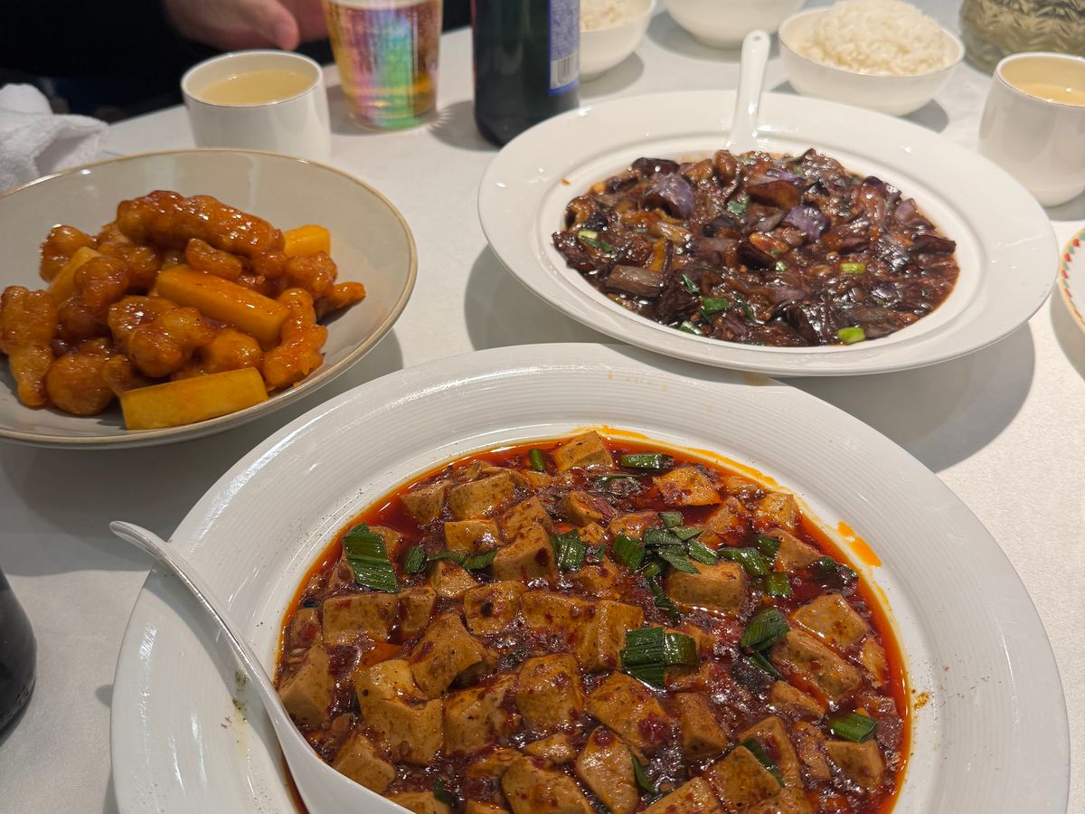 昼食の四川料理(なすの煮物、麻婆豆腐、豚肉と野菜の炒め物)も美味しかったです。