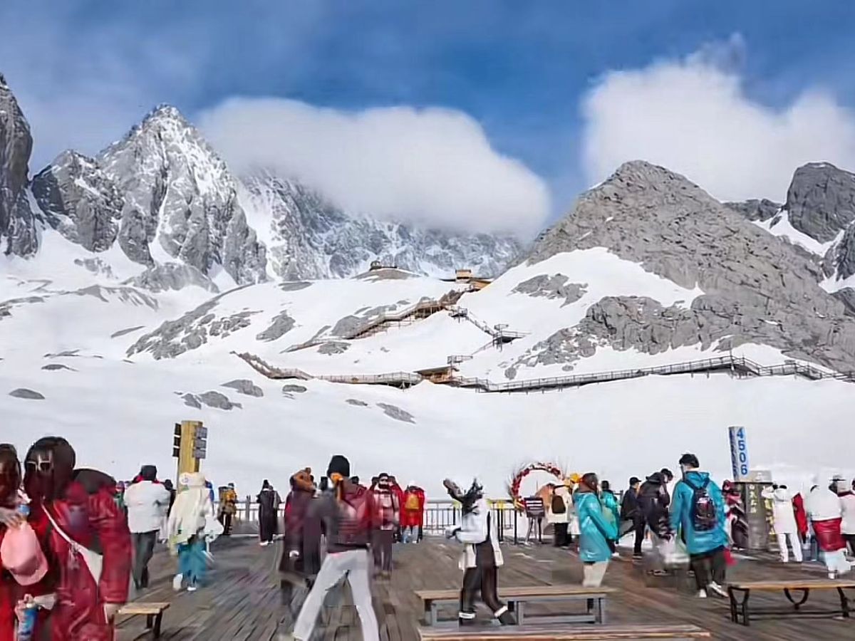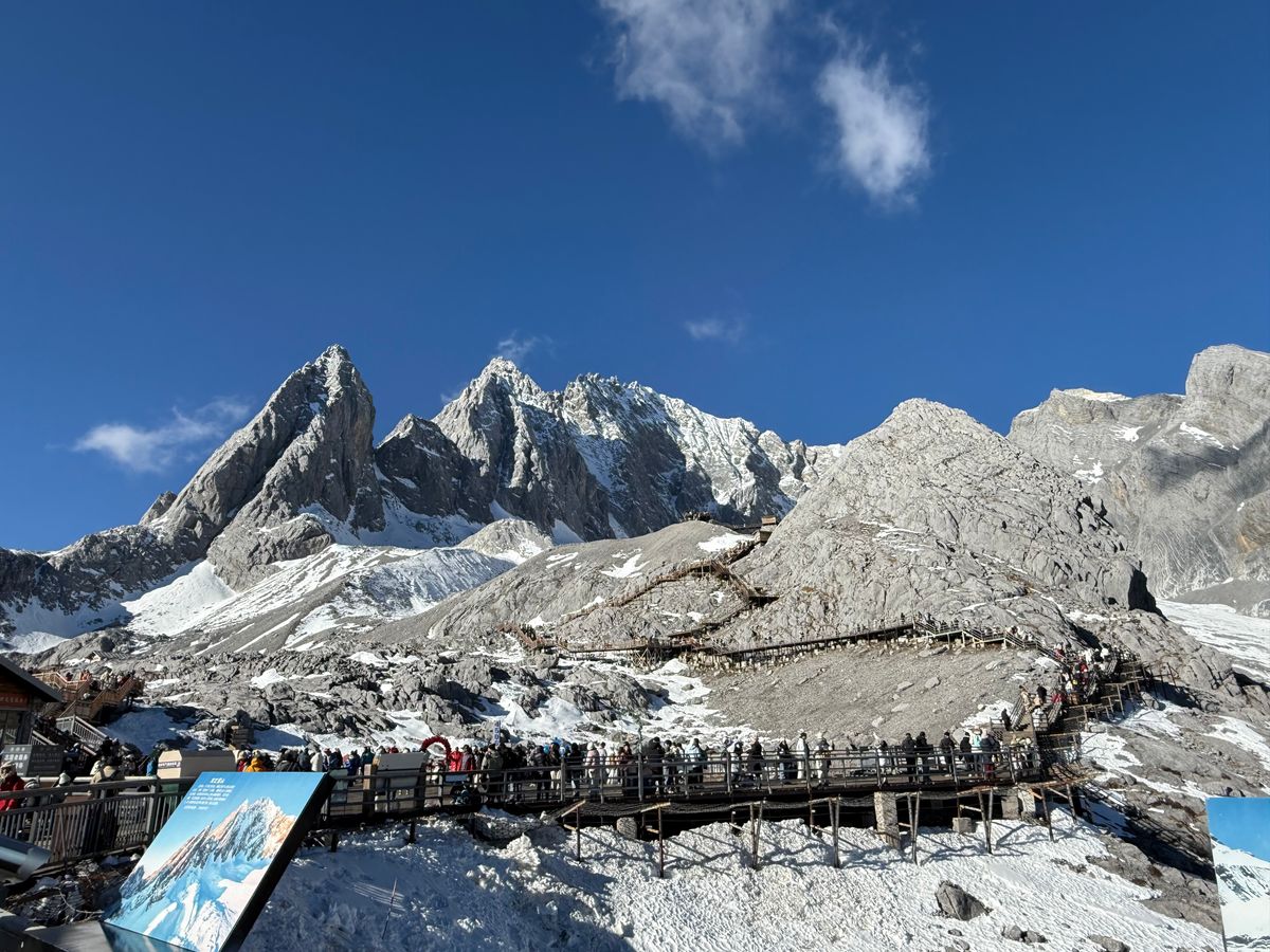 午前は、玉龍雪山へ行き写真で見た通りで本当に綺麗でしたが、あいにく天気が悪く見渡す限りの絶景はお預けでした。ただ4,500mの高さでしたので空気が薄くて、早く降りたいとのお願いもしっかり臨機応変に対応いただきました。