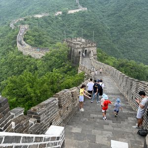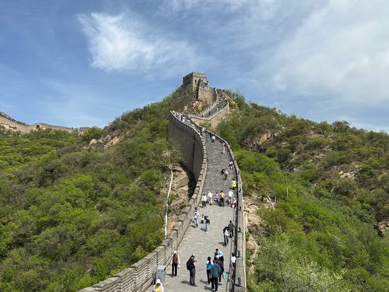 万里の長城は想像以上に急で疲れます。スニーカーに動きやすい服装をおすすめします。