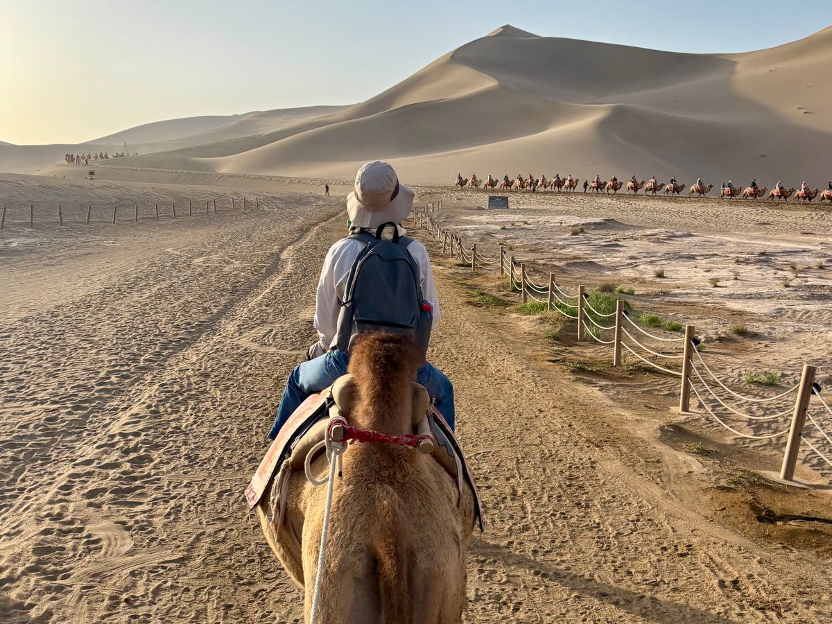 背中に乗るだけとか、その辺を一周するだけのものと違い、砂漠の中をどんどん進むので、1000年前シルクロードを旅した人たちはこんな感じだったんだとイメージすることができ、とても良い体験でした。