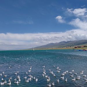 ベストシーズンと言われる夏(8月初旬)に申し込み。日月山は雨季で山崩れの恐れがあるため一時閉鎖されており、代わりに丹噶尔古城に連れて行ってもらった。歴史的な背景含めて色々説明して頂き、十分満足でした。肝心の青海湖ですが、当日は天気に恵まれ、青空の中、大変美しい姿を見ることが出来ました。菜の花はほぼ刈り取られてしまっていましたが一部残っており、黄色と青色のコントラストを楽しむことが出来ました。一方で風が強かったため遊覧船は休業となっていました。急遽代案として山に車で登って上から湖を眺めることになりましたが、結果的にはこれが大当たり。上からの景色は素晴らしく船酔いしやすい私たちにとっては逆に良かったです。湖だけでなく、道中に見えた広大な草原や砂漠、羊の群れなど、すべてが日本離れしており、移動中も大変楽しむことができました。