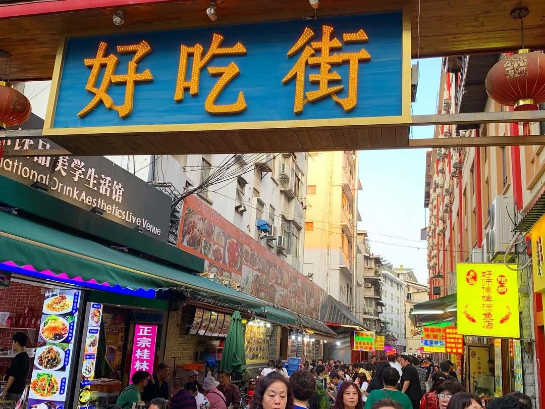 夕方になり、桂林の歩行者天国の正陽歩行街へ。600m程の道の両側にたくさんのショップ、お土産店、屋台、夜店などがひしめき合っています。ドキドキワクワクするのが、食べ物ゾーン。屋内に路地裏風にたくさんの食堂が軒を連ねる「尚水美食街」、地元の淡水魚を辛いスープで煮た(?)料理を出す食堂が続く「好吃街」、そして食べ歩きが楽しい屋台街。どこも中国語が話せないとハードルが高いですが、日本語ガイドさん同行なので言葉の心配なしで楽しめます。料理はどれも美味しそうで、何より安い!地元の人に混じって、桂林の食を堪能しました。
