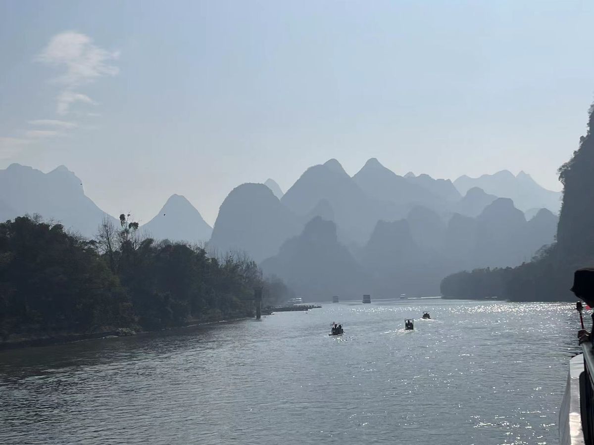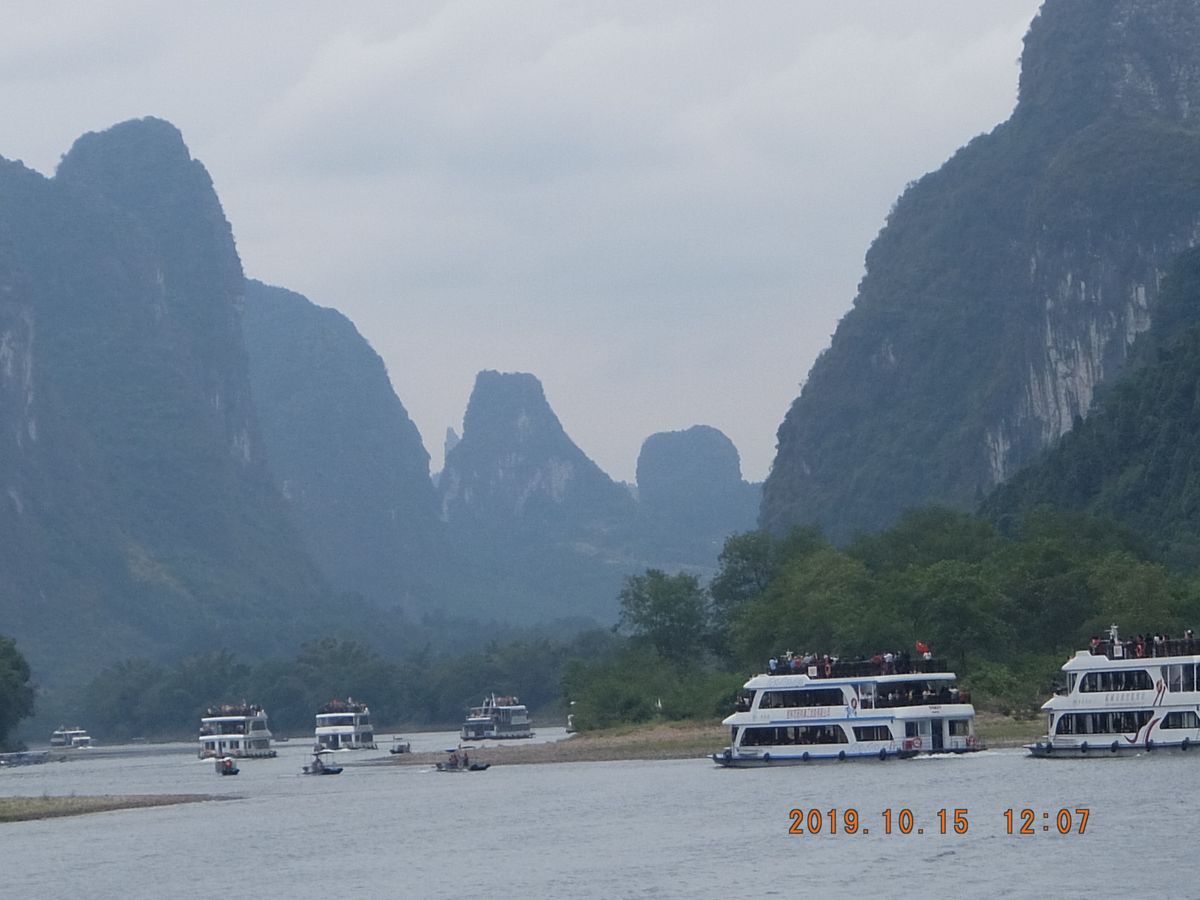 端午節期間に雨が降っており不便だと思いますが、山々に雲がかかる漓江の景色を堪能いただき、ご旅行を楽しんでいただき本当に良かったでございますね。