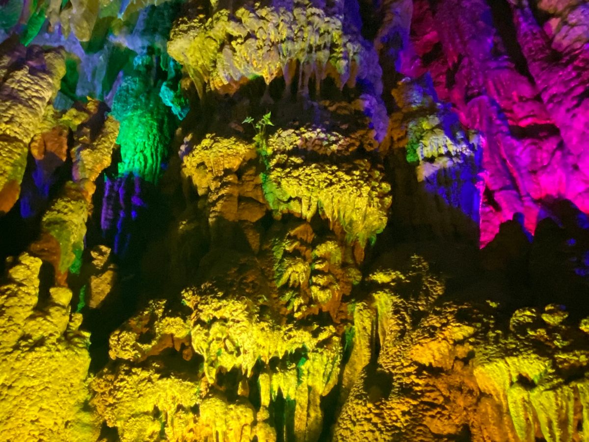 一番最初に行ったのが、芦笛岩。ライトアップされた鍾乳洞ですが、色彩が中国っぽいというか、派手です(笑)。色とりどりにライトアップされた鍾乳洞は本当に美しく、神秘的。この日の桂林は気温27度と夏日でしたが、鍾乳洞の中はひんやりとして気持ちが良かったです。ここで男性に必ず行っていただきたいのが、鍾乳洞の出口にあるトイレ(写真あり)。山水画の世界を眺めながら、絶景のトイレタイムを過ごすことができます。実際に中国の眺めの良いトイレ10選に選ばれたとか。