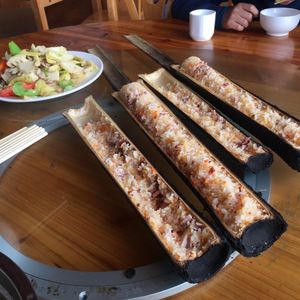 また、龍脊棚田の郷土料理と言ったら、竹筒ご飯がとても有名です。ご飯に竹の甘みが染んでいるのでより香ばしくなります。龍脊棚田に来たら絶対食べて頂きたい料理でございますね。