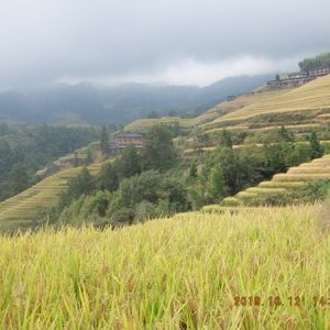 いつ棚田を刈り取るか不明だったので、桂林到着後すぐに参加できる日を、日本語のツアーは高いので英語のツアーを申し込んだ。参加者は、ベラルーシュの若者、オランダ人の若夫婦。香港からの老夫婦と我々と7人。英語のツアーにしたのは結果的に正解でした。香港の老夫婦は当然ながら中国語は喋れるので食事の時にウェイターに取り皿など色々依頼してくれた。ベラルーシュはほとんど知らなかったが、少しの知識を得ることができた。最初はみんなロープウエイで登る予定だったが、着いたらロープウエイが混雑しているから、歩いて登ってくれないかとガイドさんから提案があり、香港の老夫婦を除いて、登山することになった。30歳代の若い人々と一緒に上るのはかなりきつかったが、棚田を見ることに関しては、徒歩で登るのは大正解。登っていく途中で、いろんな角度から素晴らしい棚田を見ることができた。