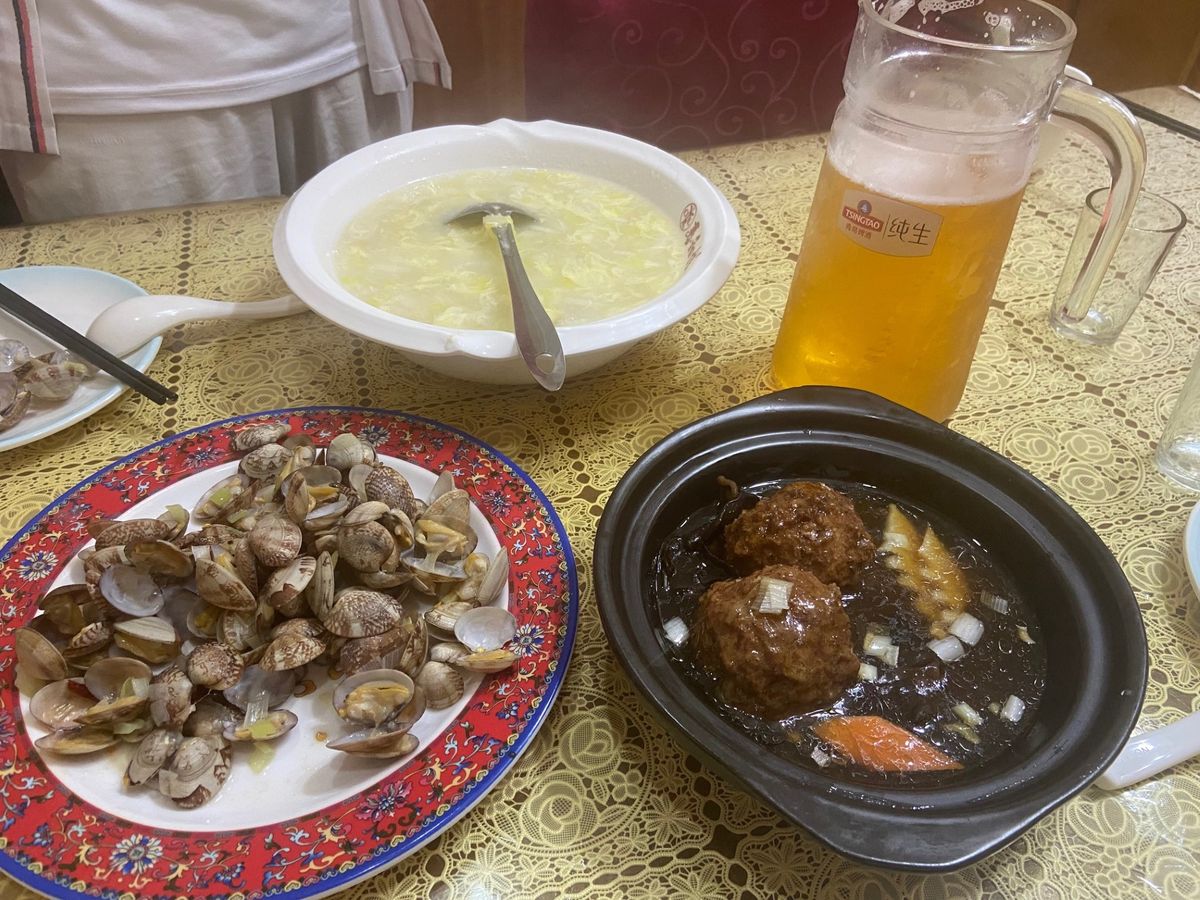 暑い1日でしたが、朝8時30分にホテルを出て夕方戻るまで、青島の街を満喫しました。午前中に小青島・八大関・中山公園・康有為故居・小魚山公園・青島ドイツ総督楼旧址博物館を精力的に散策し、汗をかいてのどが渇いたところで康有為も訪れたという『春和楼』で昼食。青島名物のアサリで生ビール(別料金)を堪能しました。ちなみにこの店で生ビールをジョッキで頼むと1.5リットルくらいの巨大なジョッキで出てきます。私は1人で全部飲みましたが、2~3人で行かれる場合は、1杯をコップでシェアすれば良いと思います。