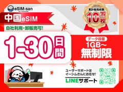 eSIMサービス 中国全土対応 <1日1GB~無制限/最大30日間/日本語LINEサポート利用可>