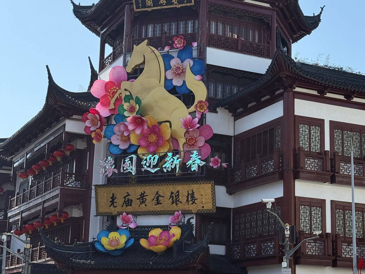豫園も新年の飾り付けと行事で,活気が,あり,熱々の小籠包は,大変美味でした。