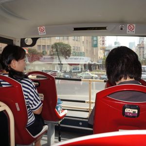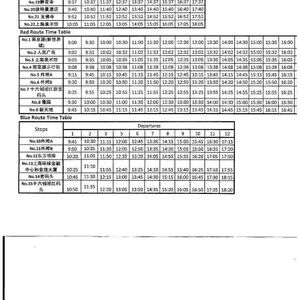 今回76歳の母親を連れての個人旅行です。母をあまり歩かせたくない、トイレの確保に困らないようにと思い参加しました。このオプションは上海の観光地をまわるバスです。同じようなバスが2社あり、そのうちの1社で観光地めぐりをします。これはハワイワイキキのトロリーバス(ピンク、レッド、グリーン)と同じように3コースあり、各国の人たちも時刻表、ルートマップを持って観光していました。このバスは人民広場前が起点です。ここでルート表(添付)と3コースの時刻表(添付:ただしこの時刻表は古くなっていた。最新版はなくしたので参考として)また水も言えば貰えます。今回とても親切なガイド王さんと一緒にバスに乗りました。急なトイレも数回ありましたが、そのたびに近くの店でトイレを借りるお願いをしていただきましたのでとても助かりました。