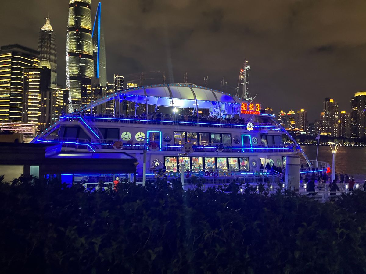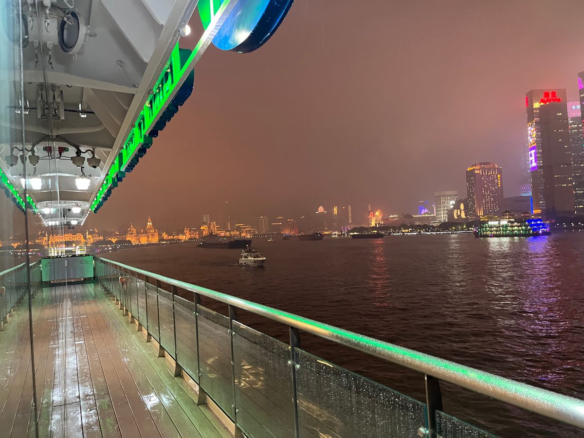 確かに船上からみる上海の夜景は素晴らしいのですが、上海に訪れた高齢中国人団体客で混雑しており、船の両サイドは場所の取り合いでカオスです。(それも中国らしいのかもしれませんが・・・。)