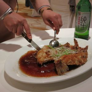ガイドさんからの説明は老舗老舗天狗威張ってるの連発のみでコースそのものは高めのお値段を了承して予約しましたが特に豪華さもなく上海蟹はかなり小ぶりでびっくりでした。店内は暖房ではなく送風になっていてびしょ濡れの体には辛くさらに冷えました。