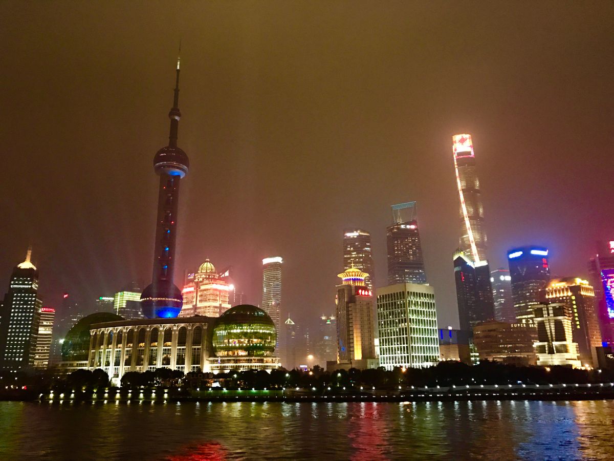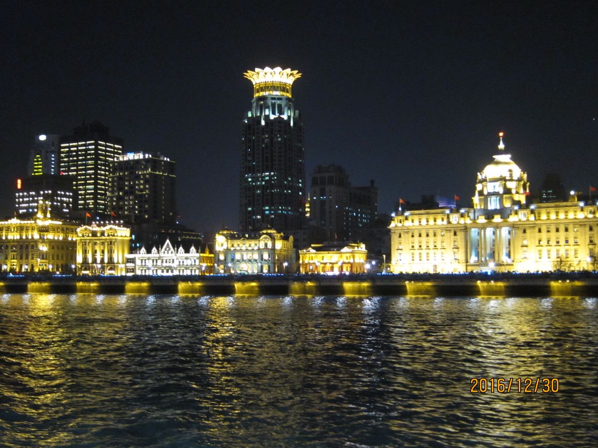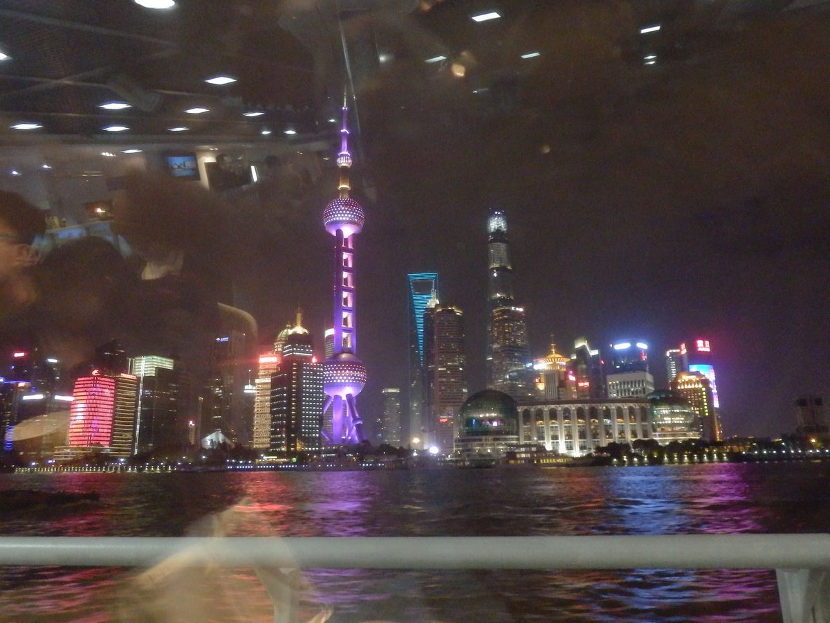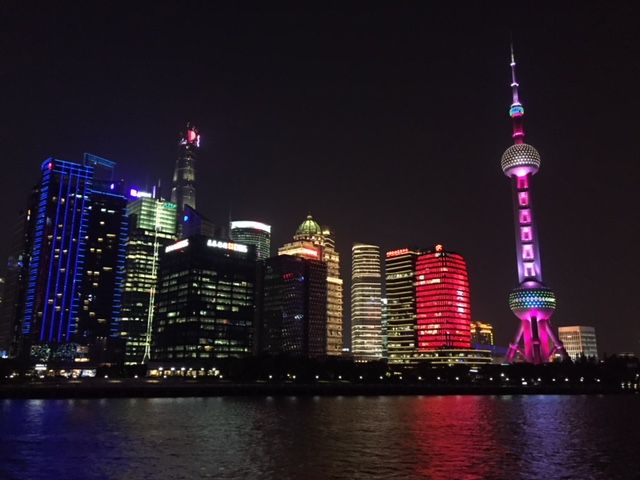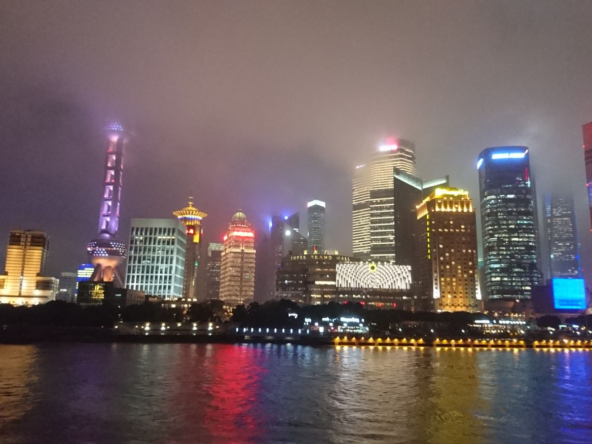 上海の夜景、船からゆっくり堪能できました。