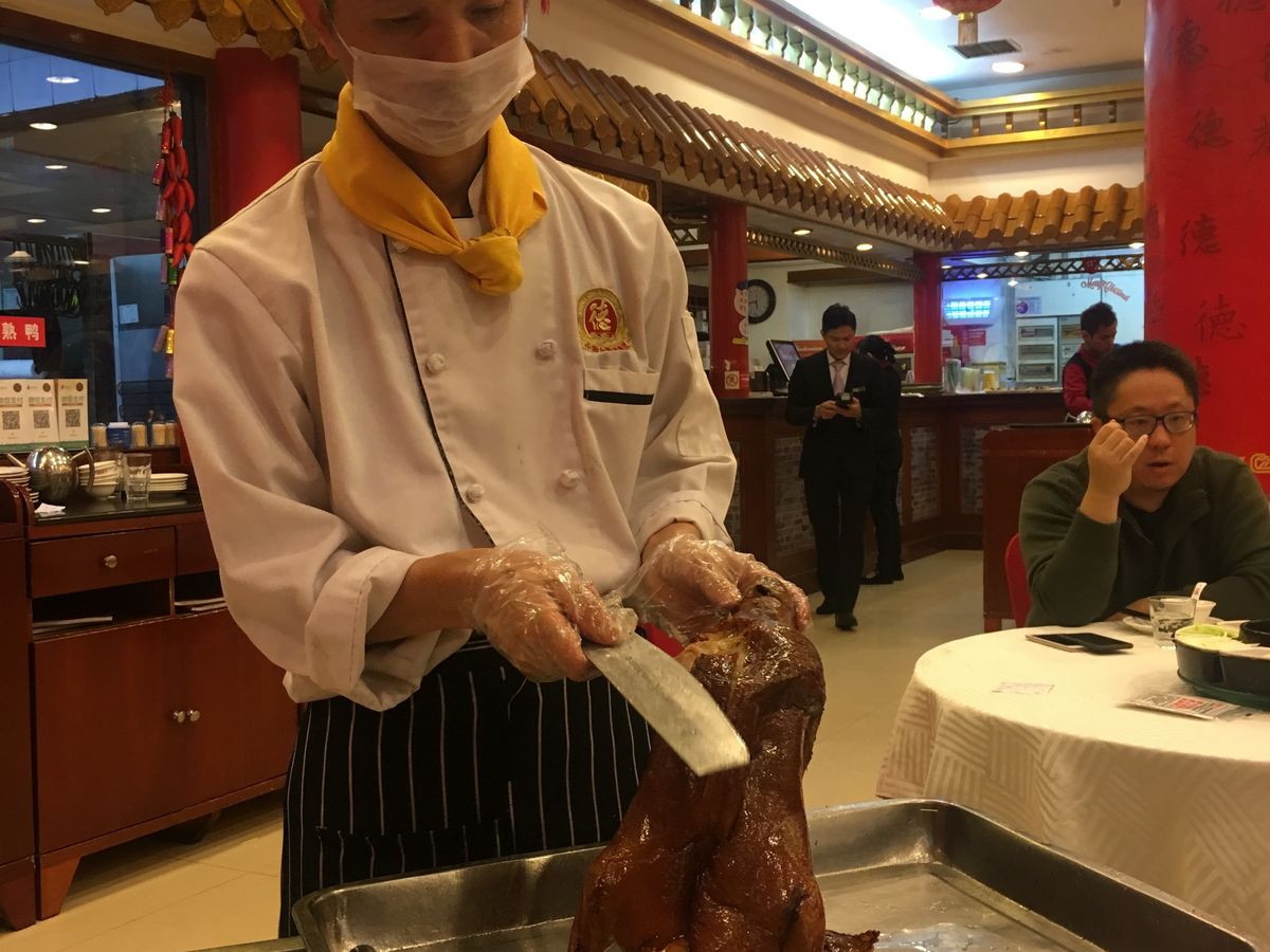 夕食は北京ダックの有名店で