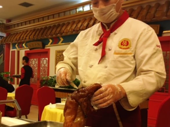 食事は美味しいし、中華料理だからしょうがないのですが、大皿料理を別グループとシェアするのはやりづらいです。北京ダックも大皿で提供されるので、皆が平等に食べられるように気を遣う…。