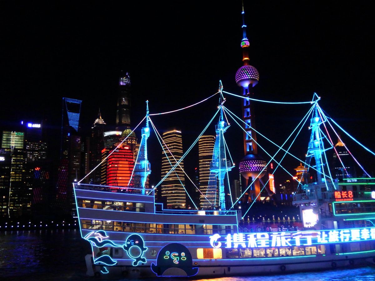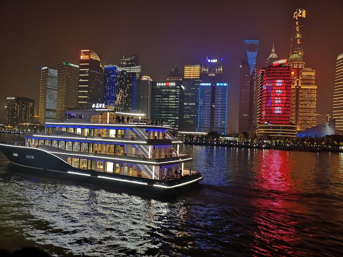 クルーズ船から見る上海の夜景は素晴らしく、絶対におすすめです。