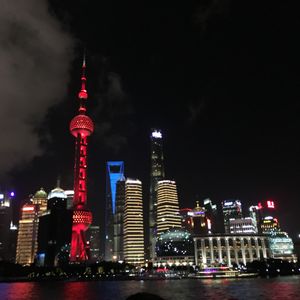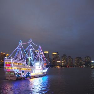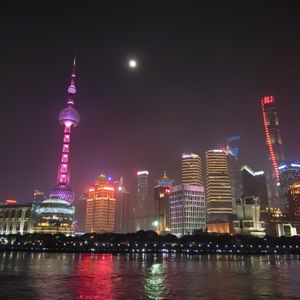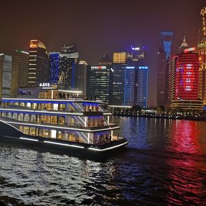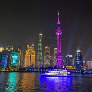上海の圧倒的な夜景を楽しむことが出来ました。クルーズ船は3層の