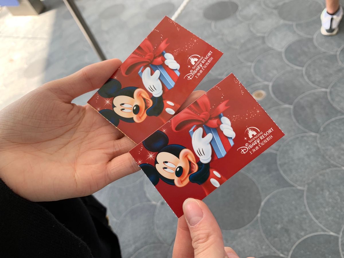 上海ディズニーランドの入場口で印刷したバウチャーとパスポートの提示で