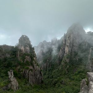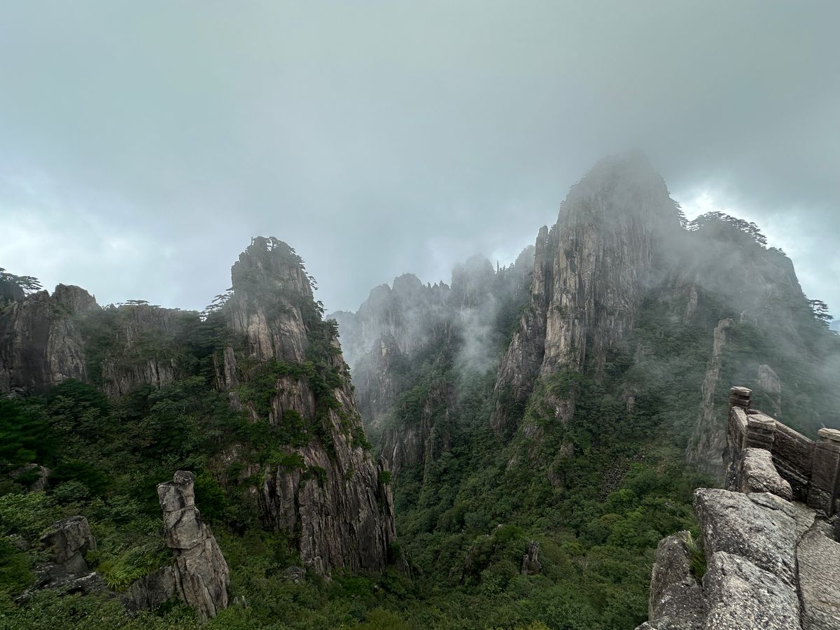 黄山は、ロープウェーに乗りますが、降りてから食事場所までかなり階段を上り下りします。高齢者にはかなりきつかったです。軽装で歩きやすい靴、杖(上る前に購入)は必須です。景色は ザ・中国というかんじで、とても綺麗でした。黄山は、雲や霧がかかるととても風情が出ます。