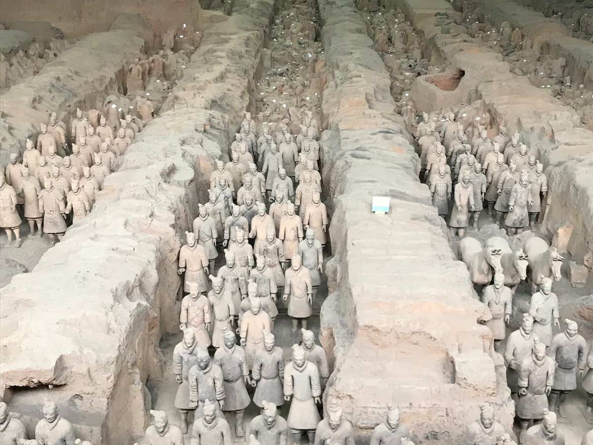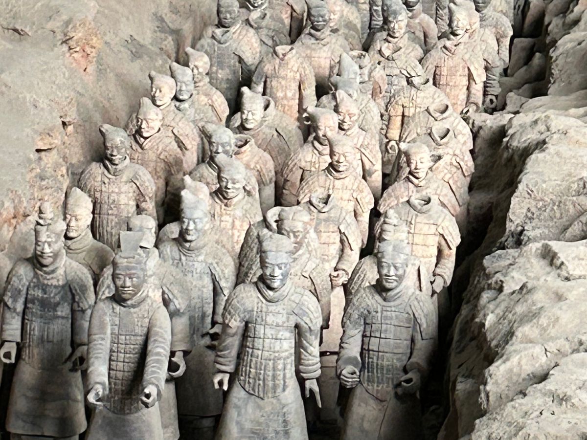 1号坑に一歩入って圧巻!言葉を失うくらい壮大な光景。灰色の兵馬俑は昔は綺麗な着色がされていたとKimiさんが説明してくれました。
