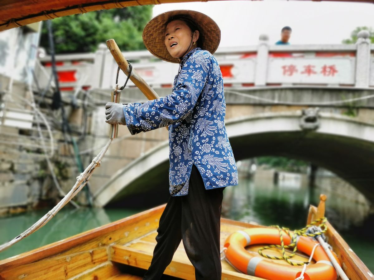 拙政園そばから乗る小舟は、フレンドリーな阿姨がゆったりと櫓を漕ぎ、時折良い声で歌ってくれ、その水音と歌声に、江南情緒を感じる事ができました。
