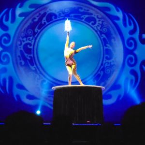 思っていたより小さなステージで、始まる前は此処で⁈という思いがありましたが、ショーが始まると完成度の高い数々の演技にスッカリ魅了され、あっと言う間の90分でした!細い綱の上を飛び回り、人と椅子の塔をジャンプで作り上げ、マジックもありフラフープの大きな中に入りグルグル回転等と、すっかり写真を撮るのも忘れて、楽しいショーを満喫しました(^。^)