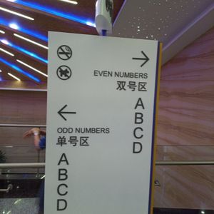 建物の中に入った後、小さな案内板があるのですが、VIP席かどうか以外にも、座席番号が奇数か偶数かで、会場内へ入る入口が異なります。
