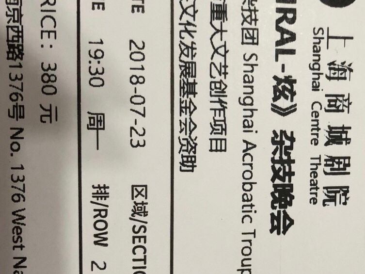 シルクドソレイユ(トーテム、キュリオス)も見ましたが、そんなの比べ物にならないくらいドキドキはらはら、とにかく素晴らしいです。芸術性も高く、ずっと集中して見ていられました。音楽もライブ演奏ですし、歌手の方も大変上手でした。上海の中心部より少し離れていて地下鉄の駅からどちらの方向か少し迷ったりもしましたが、行ってよかったです。周囲に時間をつぶせるところがないので、あまり早めに行かなくてもよいと思います。