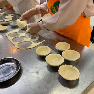 小籠包は皮づくりからやります。エッグタルトも何層にも重ねた皮伸ばしをして作ります。先生は1つ1つの工程を丁寧に教えてくれます。皮包みなど難しい工程は時々手伝ってくれます。とにかく無心、夢中になって取り組んでしまいました。予想以上にめちゃくちゃ楽しく素敵な時間でした。最後に自分が作ったものを食べてワイワイ談話しながらの時間も良いです。