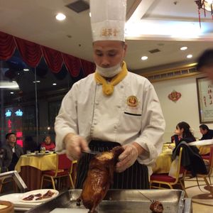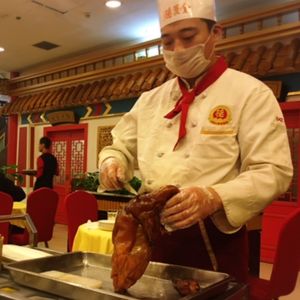 夕食は北京ダックを選びました。割と大衆的なお店でしたが、目の前北京ダックをでカットしてくれて、とても美味しく頂きました。その他のお料理もお腹一杯になりました。一時間半ほどゆっくり食事できました。