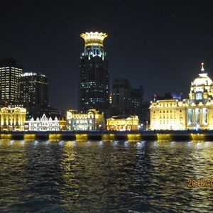 さて、上海料理ですが静安区富民路にあるフランス租界時代の洋館を利用して作られた店で、地元の家族連れで混んでいました。上海料理ってどんな料理だろう?と考えながら予約いただいていた2階の席に着くとすぐにコース料理が出てきました。海老の炒め物(龍井蝦仁),蟹と豆腐の炒め煮(蟹粉豆腐),甘辛く煮た豚の角煮(紅焼肉),川魚の甘酸煮(西湖醋魚)など川魚,野菜,肉を甘酸っぱく料理した代表的な上海料理のオンパレード。日本人の口に合う料理を選んでいただいたのかもしれませんが、どれもおいしくいただけました。量も多く、お腹一杯になったら、いよいよナイトクルーズへ出発!
