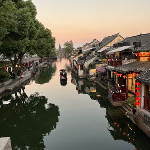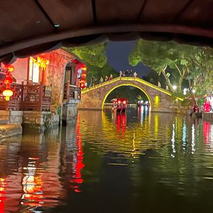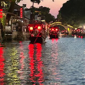 7月の上海は36度だったので夕方からの西糖ツアーに参加しました。車で1時間程で西糖へ。東洋のベニスと言われる水濠の街並みは素敵で、夜の赤いぼんぼりの灯る中を船に乗る体験が印象的でした。ただ夏休みの週末だったので陽が沈む頃にはかなり混雑していました。用意されていた食事も日本人好みの家庭料理の中華で全て美味しかったです。日本語が話せるガイドさんで楽しくお話しながら散策できました。写真も沢山とってくれました。プロの腕前で良い旅の思い出ができました。送迎付きで楽でしたし他のツアーも機会があれば参加したいです。