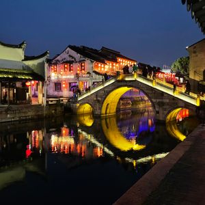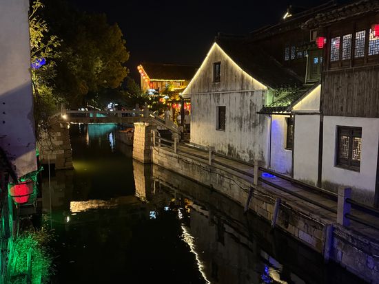 大都市の蘇州よりも水郷の雰囲気がより味わえると、人気も満足度も高い西塘。トム・クルーズ主演の映画『ミッション・インポッシブル』のロケ地となり、一気に人気に火が付きました。西塘の魅力は、何と言っても夕方~夜のライトアップ。どこを撮っても絵になります。観光地としてよく整備されており、食べ歩きやショッピングは無限大に楽しめます。奥のエリアがバーやクラブ通りになっており、観光客に占める若者の割合が他の水郷古鎮よりも高いことも特徴です。
