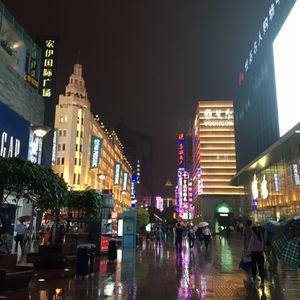 写真は手前南京東路3番出口のMC奥がホテルです。