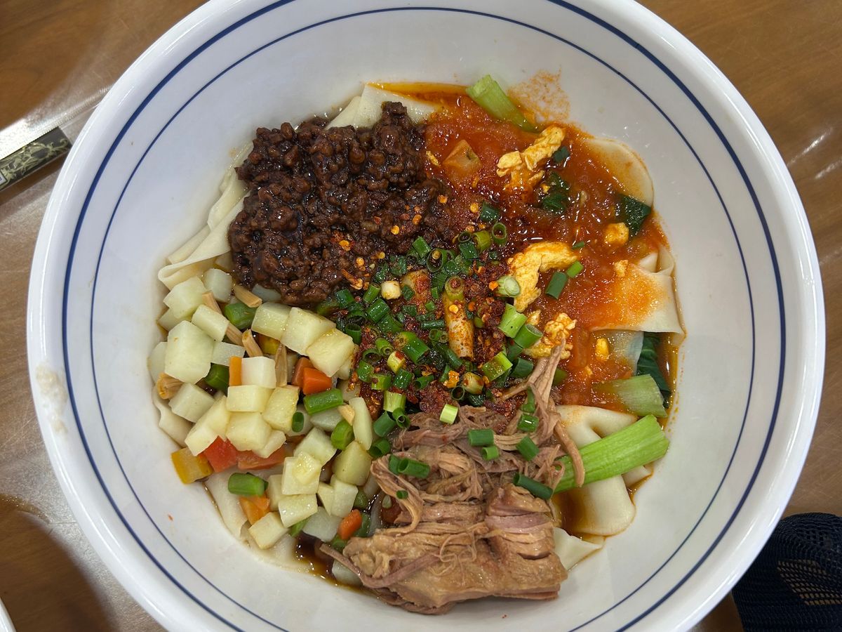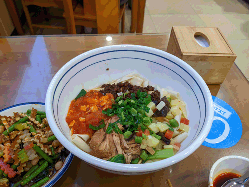 昼食でいただいたビャンビャン麺と米麺がとても美味しかったです。