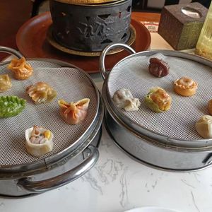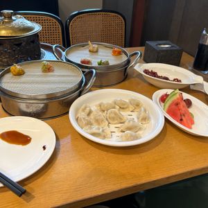 昼食にいただいたリャンピーは、ニンニクの効いた味わいで大変美味しく、特に印象に残っています。デザートには、任さんがザクロと、柿をご馳走していただきました。ザクロも柿もとても甘くてジューシーでした。さらに、夕食にいただいた小籠包もさまざまな味があり、素晴らしく、絶品でした。