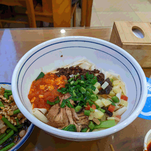 昼食でいただいたビャンビャン麺と米麺がとても美味しかったです。