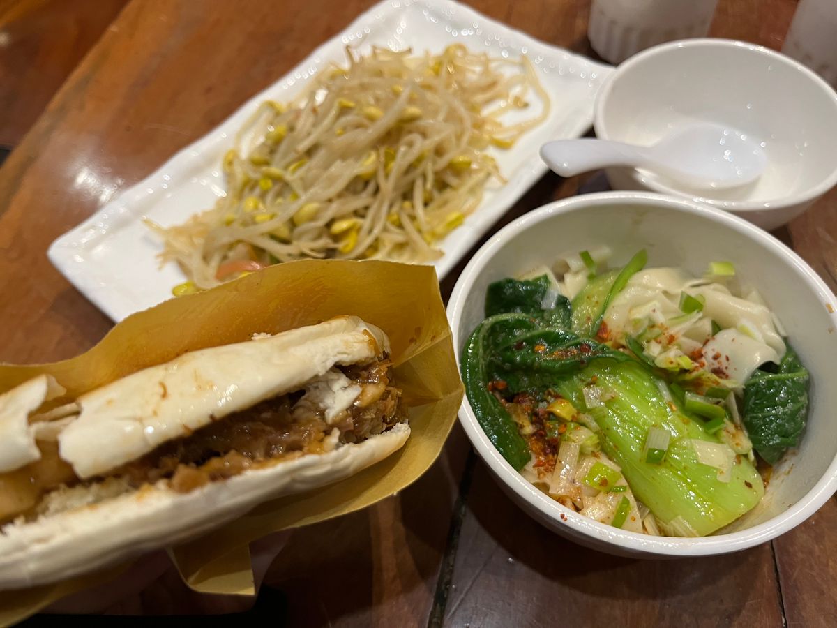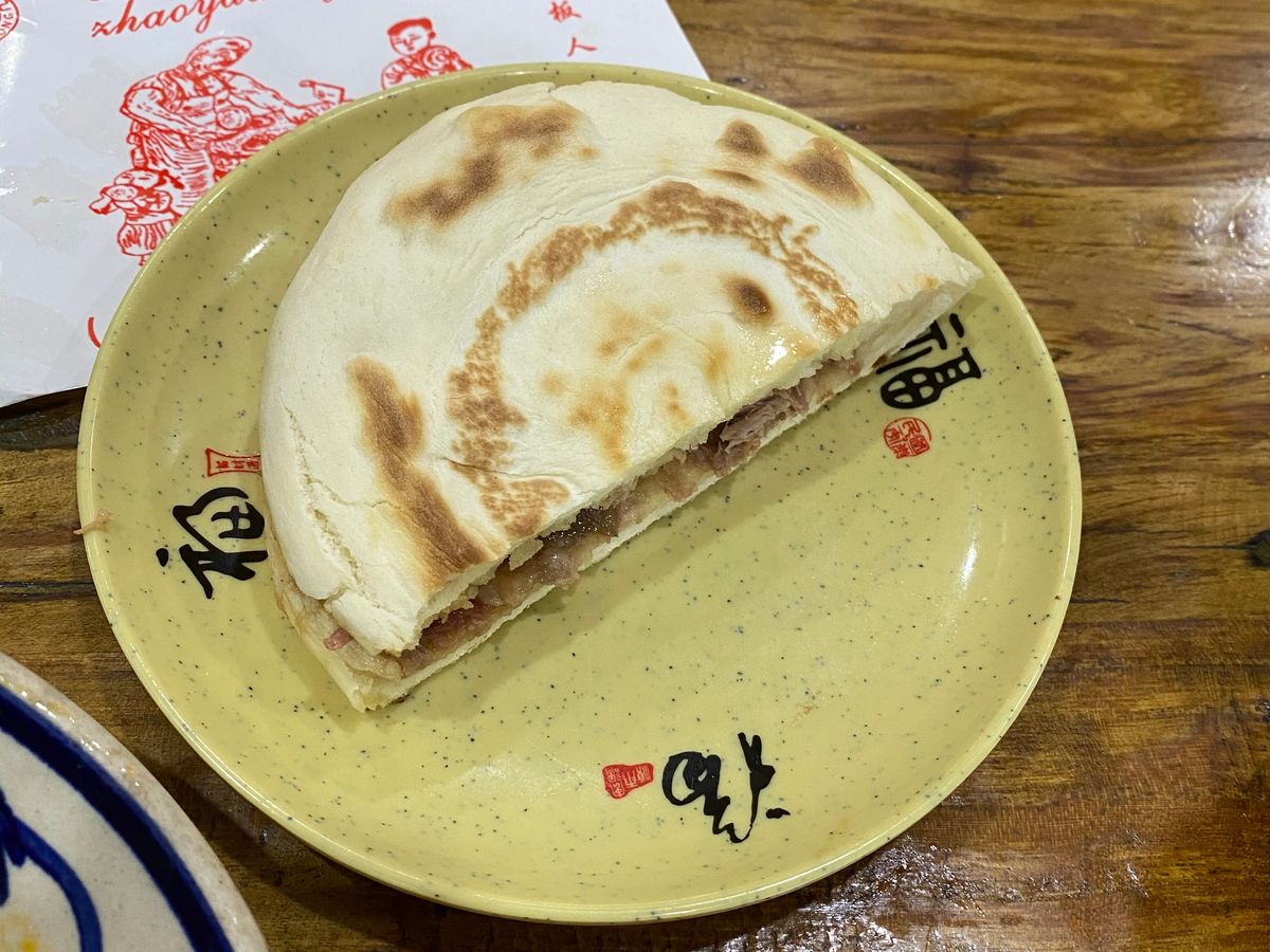 ④昼食…ビャンビャン麺とロウジャーモウ(中国風肉サンド)はとても美味しくて、2歳の娘も好んで食べていました。