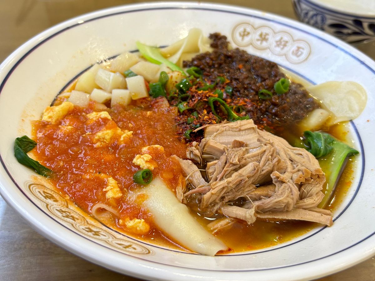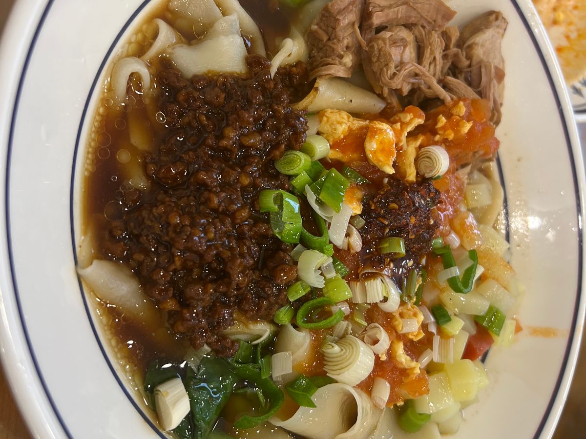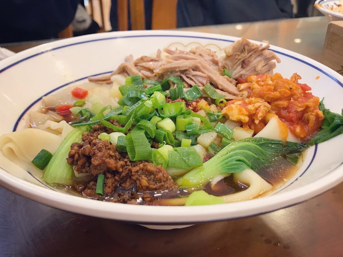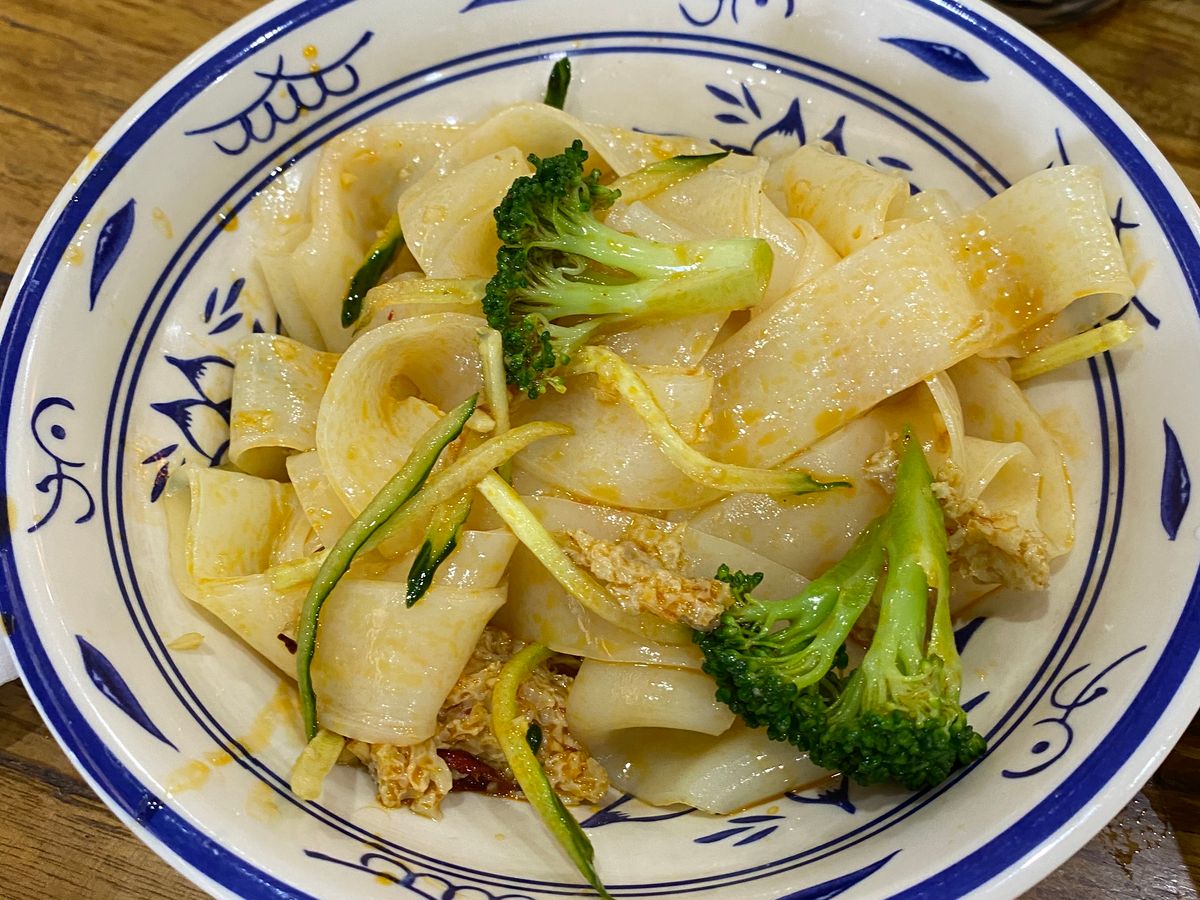 昼食はビャンビャン麺。辛さ(辣)は控えめにするのがオススメです。気になる方はペットボトルや消毒を持参して器を消毒すると良いです。