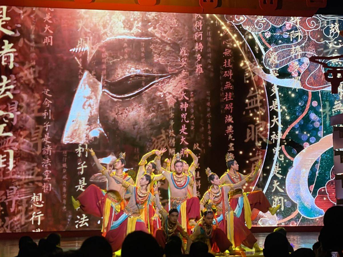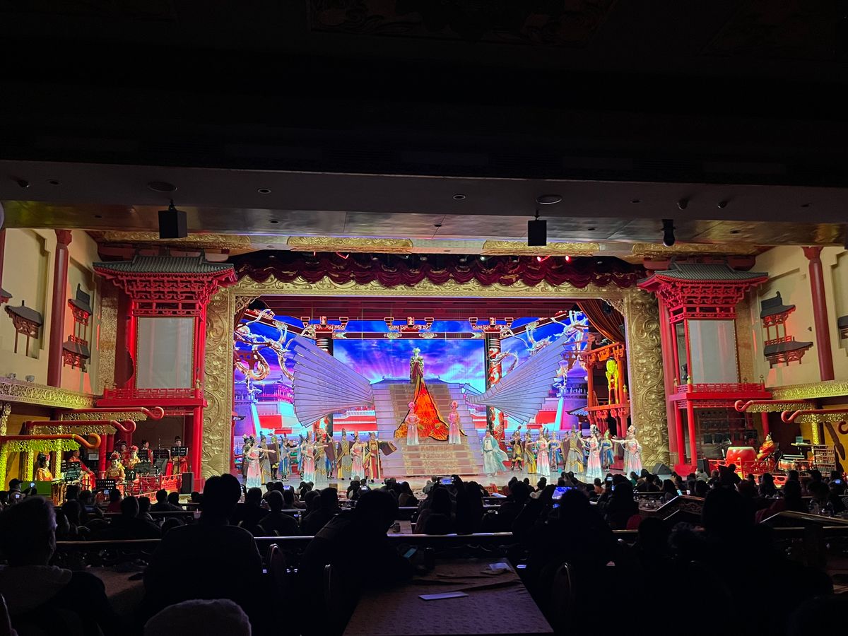 夜の唐歌舞ショーもキラッキラできれいで迫力もありました。途中に中国語の解説があったけど劇を見ているだけでストーリーがわかりました。最後に役者さんとも写真を一緒に撮れて最高でした。