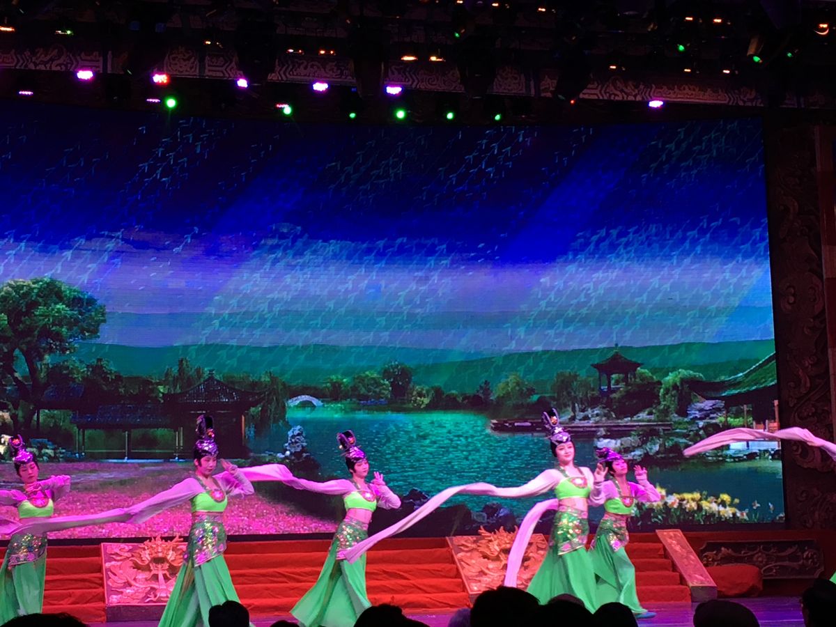 夕食後には唐の舞踊ショーの鑑賞があったのですが、座席が中央の後ろ側という写真映えする場所だったのも高評価でした。