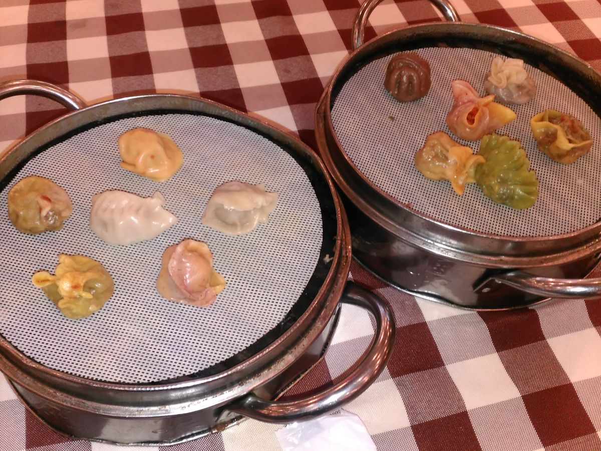 食事は昼は兵馬俑館の出口近くのお土産やさんの2階のレストランで名物ビャンビャン面を含んだ料理、夜は鼓楼、回民街側の餃子の有名店で日本ではお目にかかれない種類の餃子をいただきました。(色のバラエティがすごい)