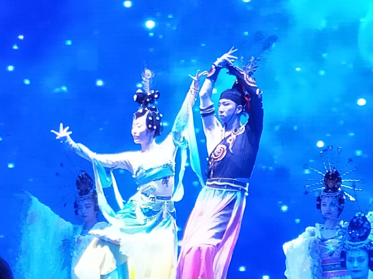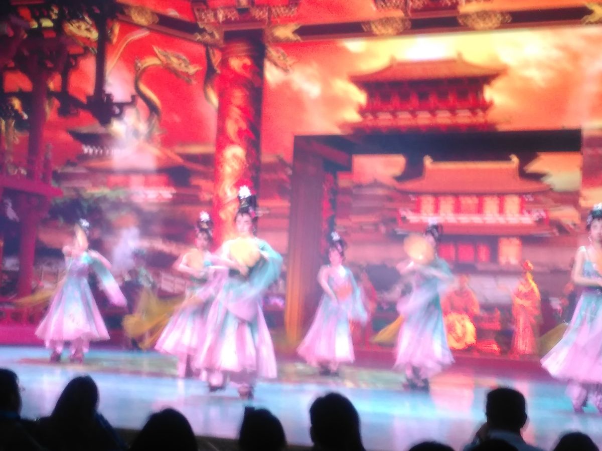 夜のショーはテーマ毎に区切られてそれぞれ、舞台の左に中国語、右に英語が掲示され英語のアナウンスもあり、分かり易く構成されていました。観客は欧米人が多かったです。
