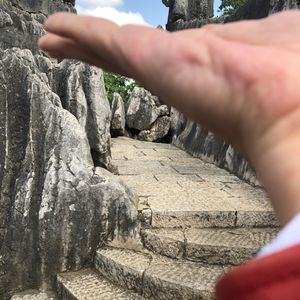 石灰岩の雄大な景色と良いガイドさんに恵まれ満喫しました。上り下りが多く、一万歩以上歩くので運動靴をお勧めします。昼食は事前頼んだら辛くない昆明料理を用意してくれました。