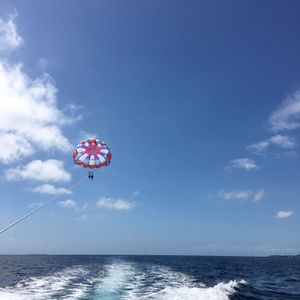 パラセーリングとジェットスキー、どちらも遊びたかったので一日中遊べるコースで申し込みました。この選択は正解でした。パラセーリングは想像よりも高く上がり、360度景観を眺めれて凄かったです。どんどん高度が上がっていくところがワクワクしました。ジェットスキーは自分で操縦できるのですが、スタッフが後ろに同乗してくれたので、初心者の私は凄く安心しました。速さもメーターで出て確認できます。自分で風と波をきる感覚は最高でした。どちらも絶対するべきアクティビティだと思います。あと他の私たち家族のお気に入りは、スキーチューブです。信じられないくらい揺れて、ジェットコースターみたいで楽しかったです。数回乗りました。他のマリンスポーツも充実してました。カヤックもスタンドアップパドルもそれほど操作が難しいものではないので、気軽に楽しめます。もし疲れたら浜辺で寝ることもできるし、時間が自由に使えるいいコースだったと思います。