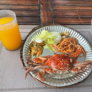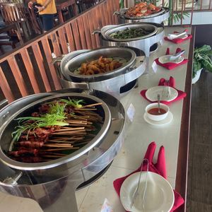 ナルスアン島で昼食にバイキングを楽しみました。スパゲッティーやサラダ、スープ、果物等、種類が豊富でした。中でも小さなカニを丸ごと味わうことができたのは特別な体験でした。また、ピリ辛の貝のスープがおいしかったです。