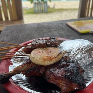 少し晴れ間の出たナルスアン島を散策しながら映え写真をスタッフの方に撮っていただき、パンダノン島ではお昼にバーベキューをいただきました。見た目は焦げ気味ですが、これがジューシーで最高に美味しかったです!
