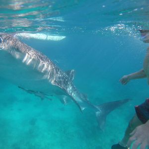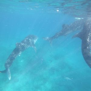 オスロブではジンベイザメとの距離が近くて大迫力でした。4メートル以内には近付かないように案内されますし、尾びれで叩かれたら危ないと思いますが、向こうから期せずして寄ってくることもありますので気を付けてください。