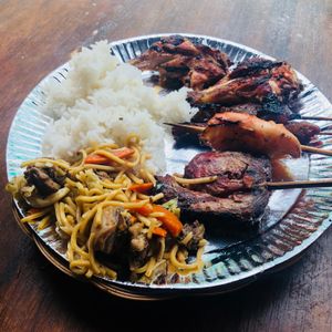 BBQを楽しみにしていましたが、それらしきものは小さな鉄板で小さな肉と魚を油たっぷりで焼いていただけ。見てるだけで食欲がなくなった。魚は表面が焦げて、中身は生状態でした。中国系の団体で一杯で片隅の席でひっそり食べていました。飲み物もお水以外はすべて(ソフトドリンクも)有料でした。